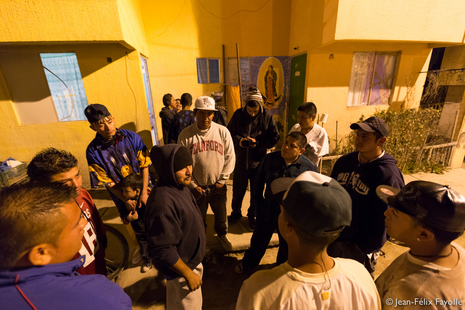 A peine arrivés le samedi soir à Matehuala, nous sommes allés rencontrer la bande des “LibeLocos” dans le quartier de Bustamante 2, un des plus “chauds” de Matehuala. Ce quartier est également surnommé “El Agarron”, du fait que toutes les maisons de ce quartier sont toute occupées et non louées ou achetées. La bande des “LibeLocos” s’appelle ainsi pour être originaire du quartier d’à côté, le quartier de la Libertad.